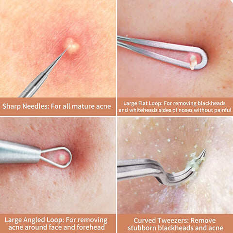MULTIFUNCTION: The blackhead removal tools with double needle types design are perfect to remove acne, blackhead, blemish, whitehead on forehead, face, sides of nose and other skin area. Be gently during use and don't use any Blackhead Remover Tool before the acne matures.