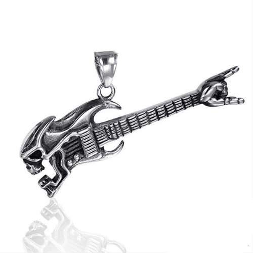 This Punk Bass Skull Pendant is a rebellious and stylish accessory. This pendant features a skull with a bass guitar design, combining punk rock vibes with edgy fashion.