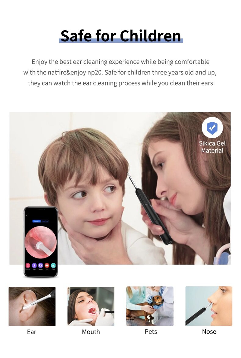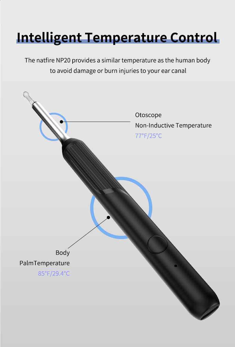 【NP20 Wireless Otoscope】Natfire np20 upgraded on the basis of previous generation. The product is fully FCC, RoHS, CE compliant. we upgrade harmless accessories. suitable for oily ear,which can be safety to meet different people in different occasions.