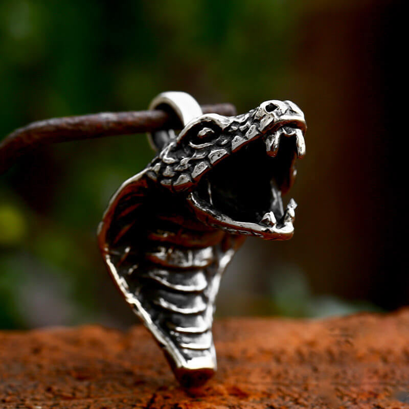 The most talented dancer among the snake species is the cobra. Although very artistic, you should not underestimate its venom. In mythology, snakes are spiritual creatures that are either cunning or divine, but they are creepy creatures in their own right. A true warrior does not fear danger, and with a cobra pendant that enhances masculinity, you will not be able to resist.